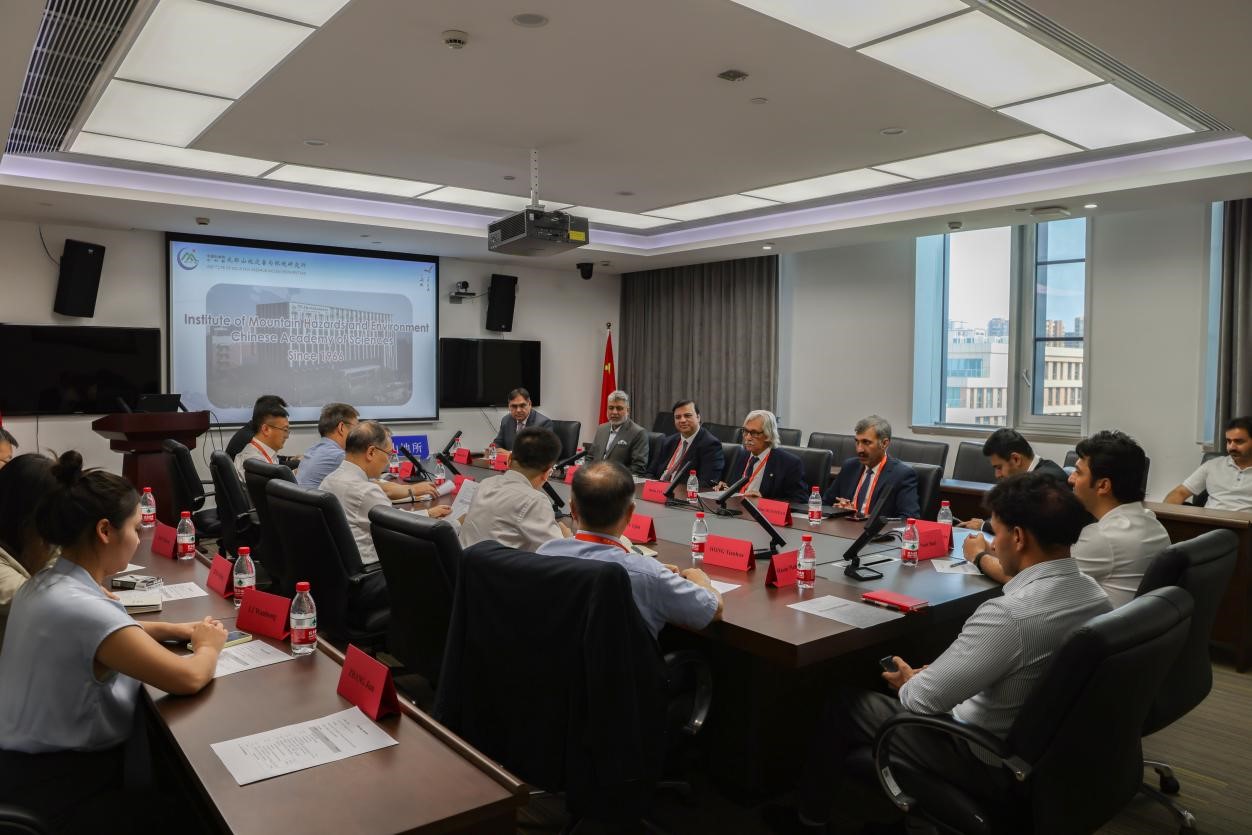 The visit was also attended by Mr. Zain ul Abedin, Director of the International Cooperation Department, Ministry of Science and Technology of Pakistan, Mr. Khan Muhammad, Science Counselor of the Pakistani Embassy in China, Mr. Agha Hunain Abbas Khan, Deputy Consulate-General of the Pakistani General Consulate in Chengdu, and Prof. Mohammad Qasim Jan, Foreign Academician of CAS and recipient of the CAS International Science and Technology Cooperation Award. Prof. Ge Yonggang, Head of the Science and Technology Department of IMHE, Prof. Hong Tianhua, Executive Director of CPJRC, and key researchers attended the meeting.